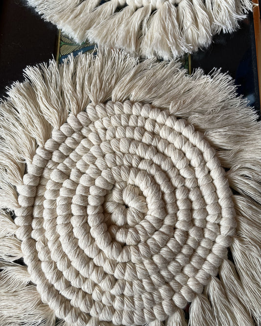 Antara Off-White Macrame Round Coasters (Set of 2)