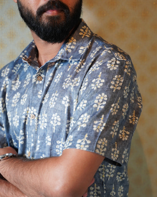 Sold outBlue Rayon Foil Printed Shirt