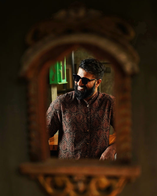 Black & Maroon Paisley Block-Printed Shirt