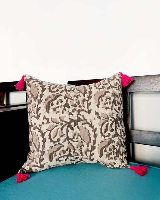 Kantha Paisley Fusion | Pure Cotton Block Printed Cushion Covers with Kantha work & tassles | Set of 2