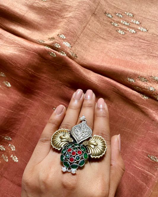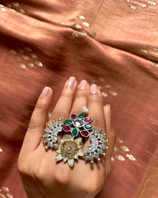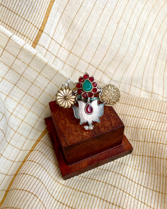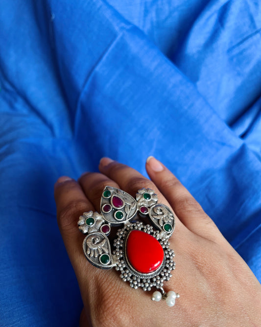 Aswaah | Silver Plated Handcrafted Fusion Statement Ring