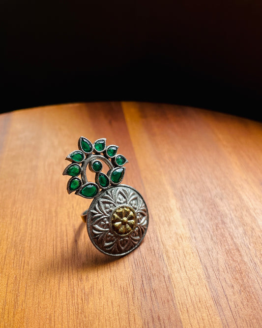 Dhwanit | Silver Plated Dual Tone Fusion Handcrafted Statement Ring