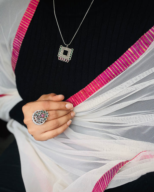 Arudhra|Silver Plated Multicolour Stone Adjustable Ring