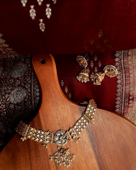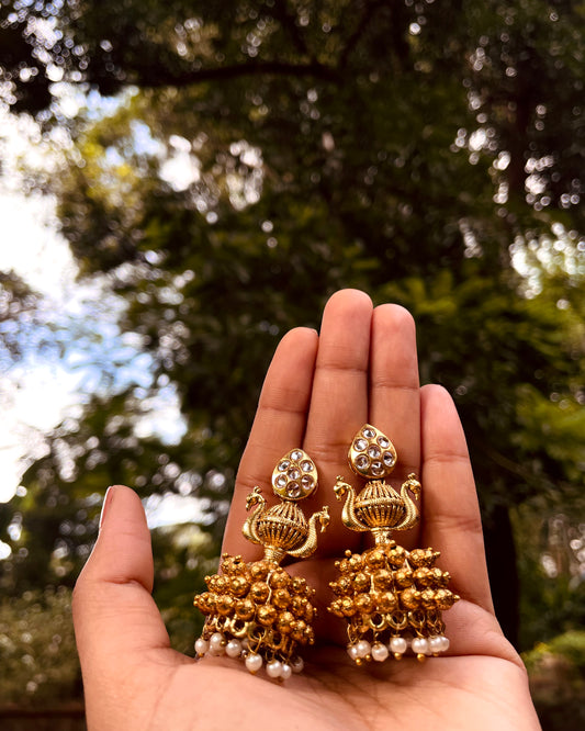 There’s beauty in Jewellery that ages. The ones that sit quietly in your grandmother’s box, wrapped in soft cloth, smelling faintly of your childhood, sandalwood, and time. This collection carries that same warmth. Each piece is made slowly, by hand. Inspired by South Indian temple forms & old traditional motifs, these aren’t just designs, they’re echoes. The kind you keep, wear, and someday, pass on, with a little more story etched in.