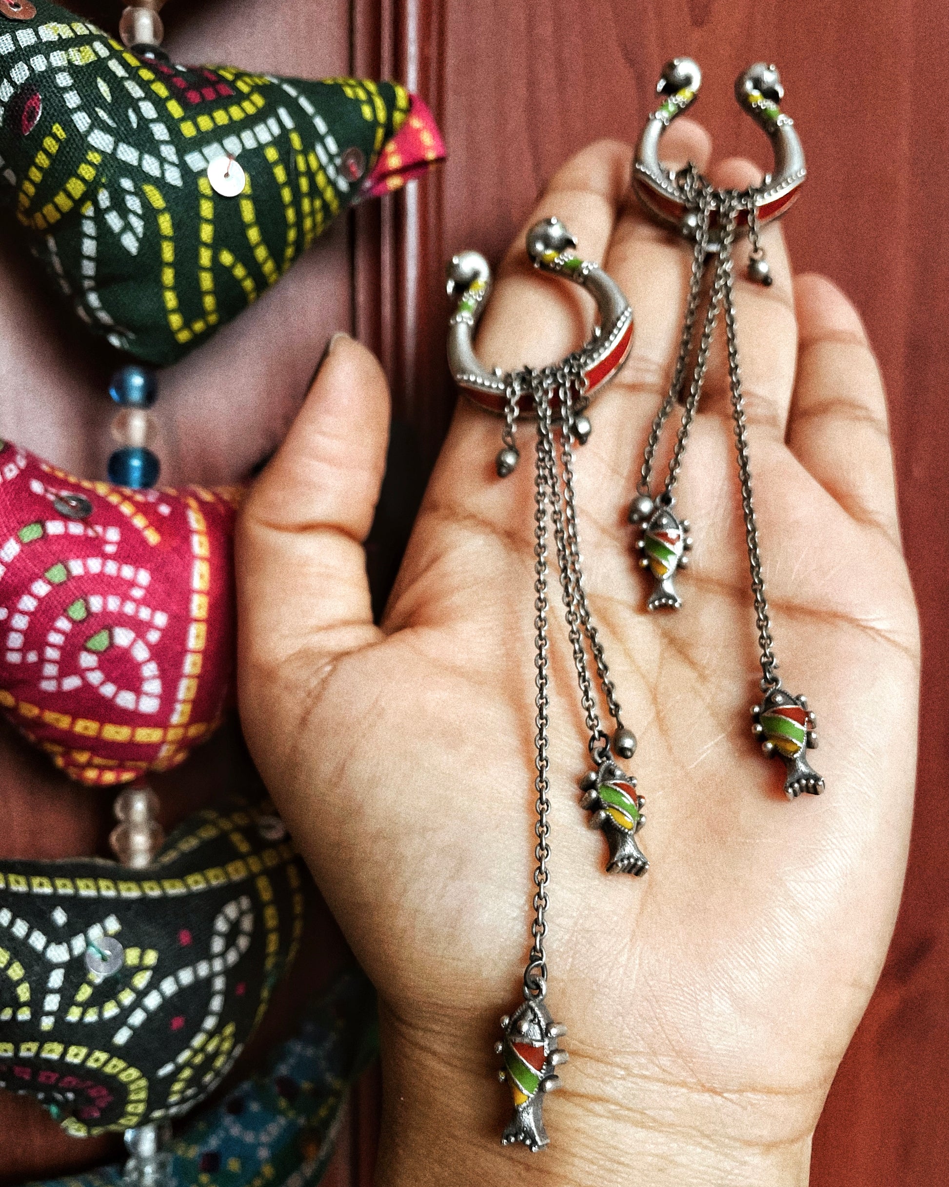 जलनर्तकी | Silver-Plated Meenakari Statement Drops