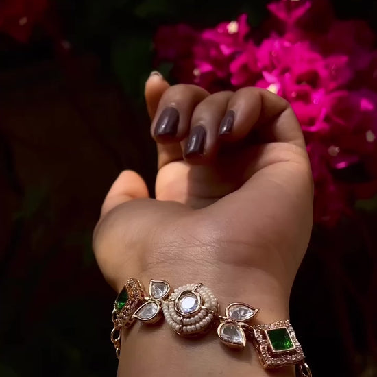 Aurum Leaf | Delicate Kundan Statement Bracelet