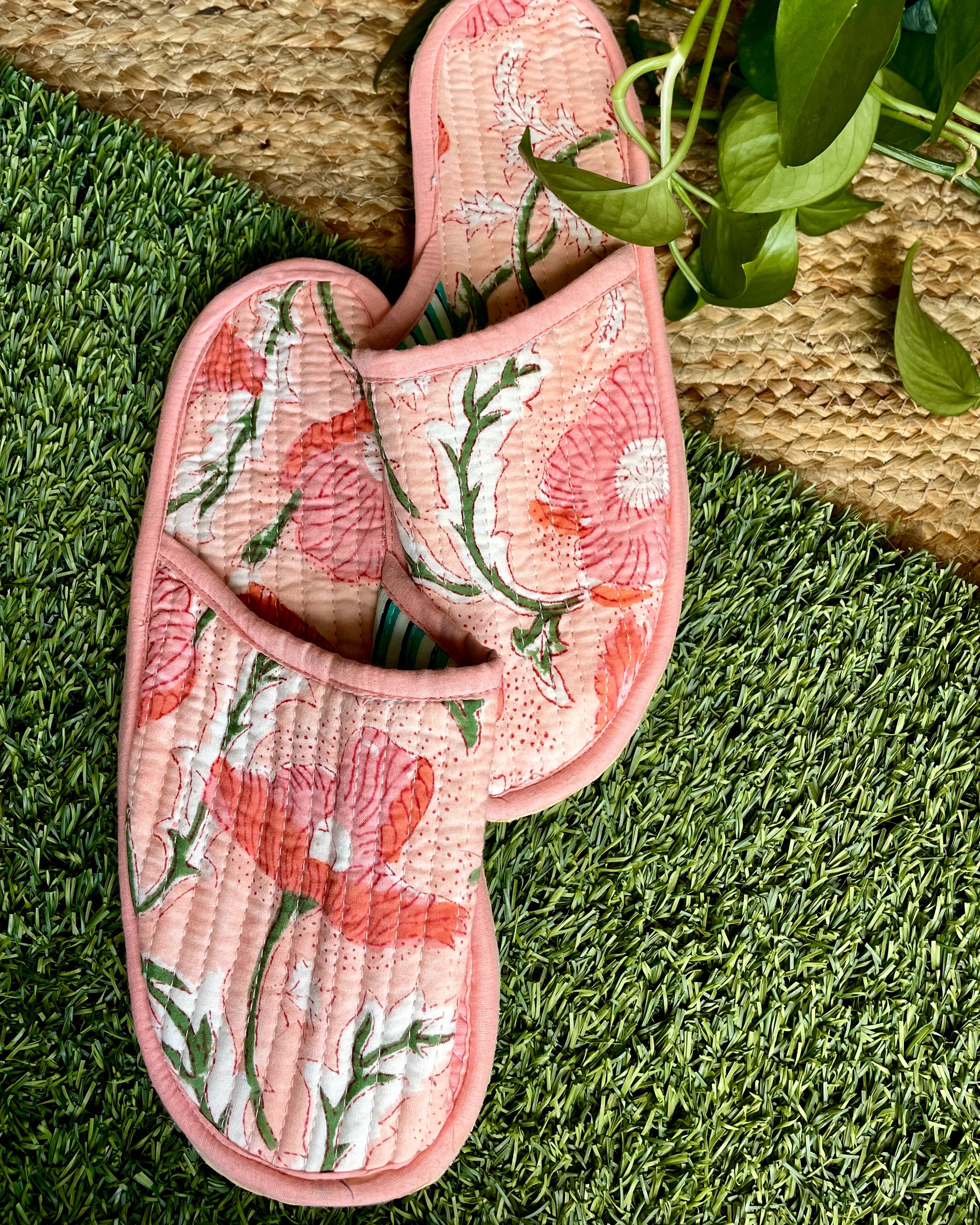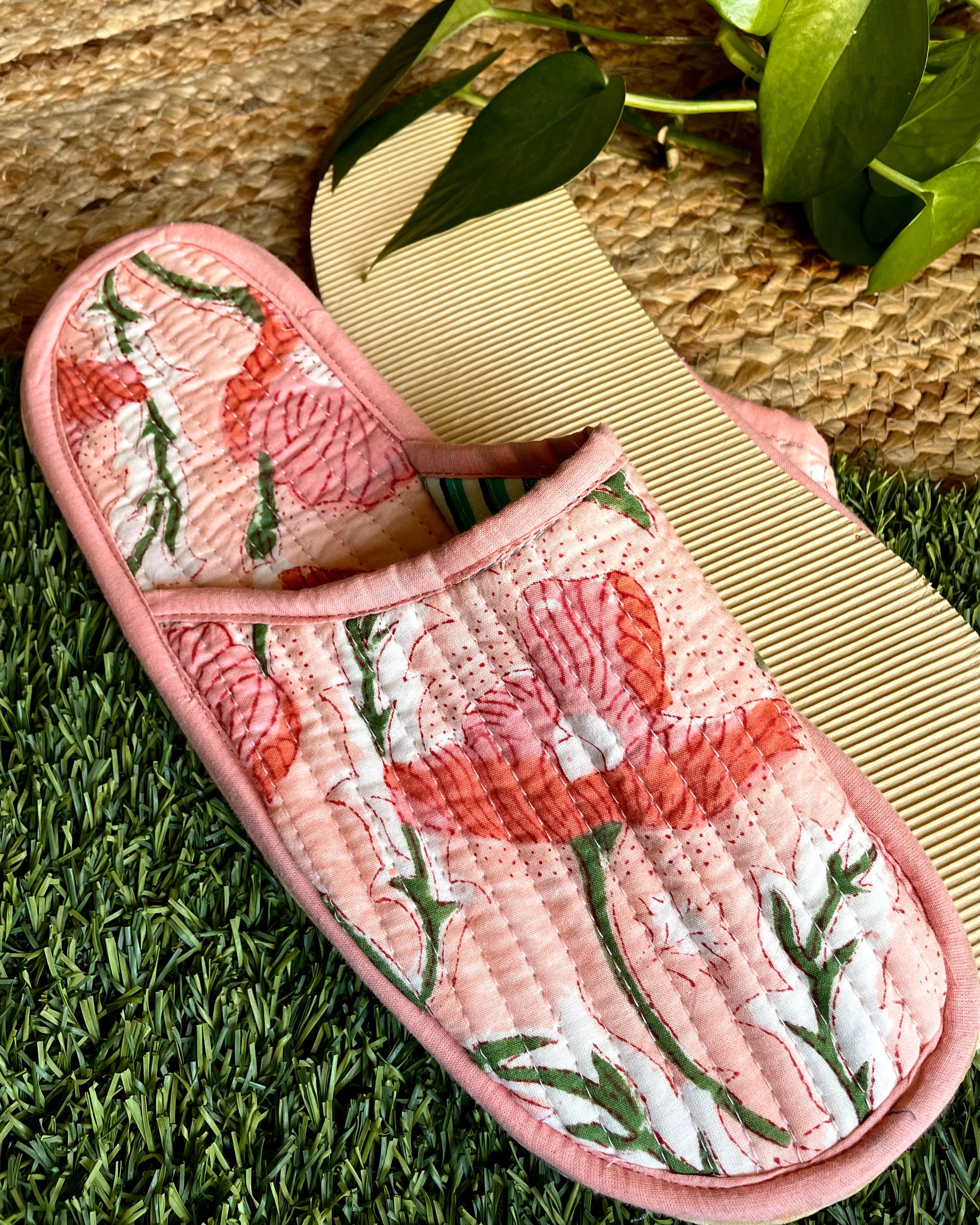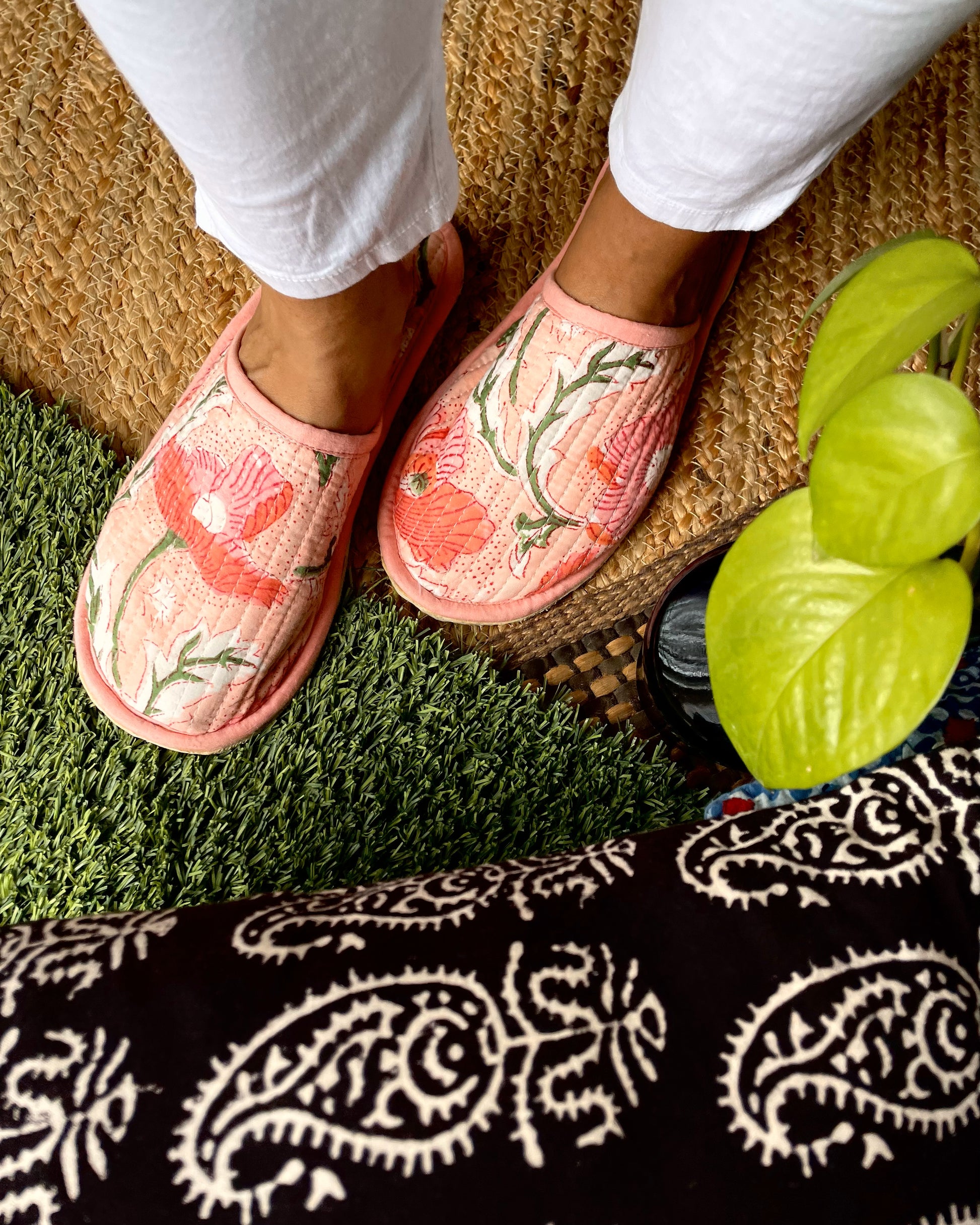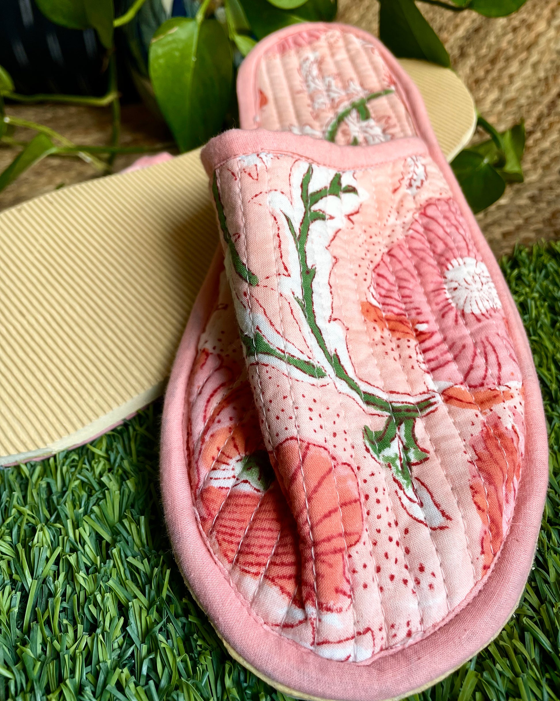 Enchanted Garden | Hand Block Printed & Quilted Cotton Home Slip-Ons