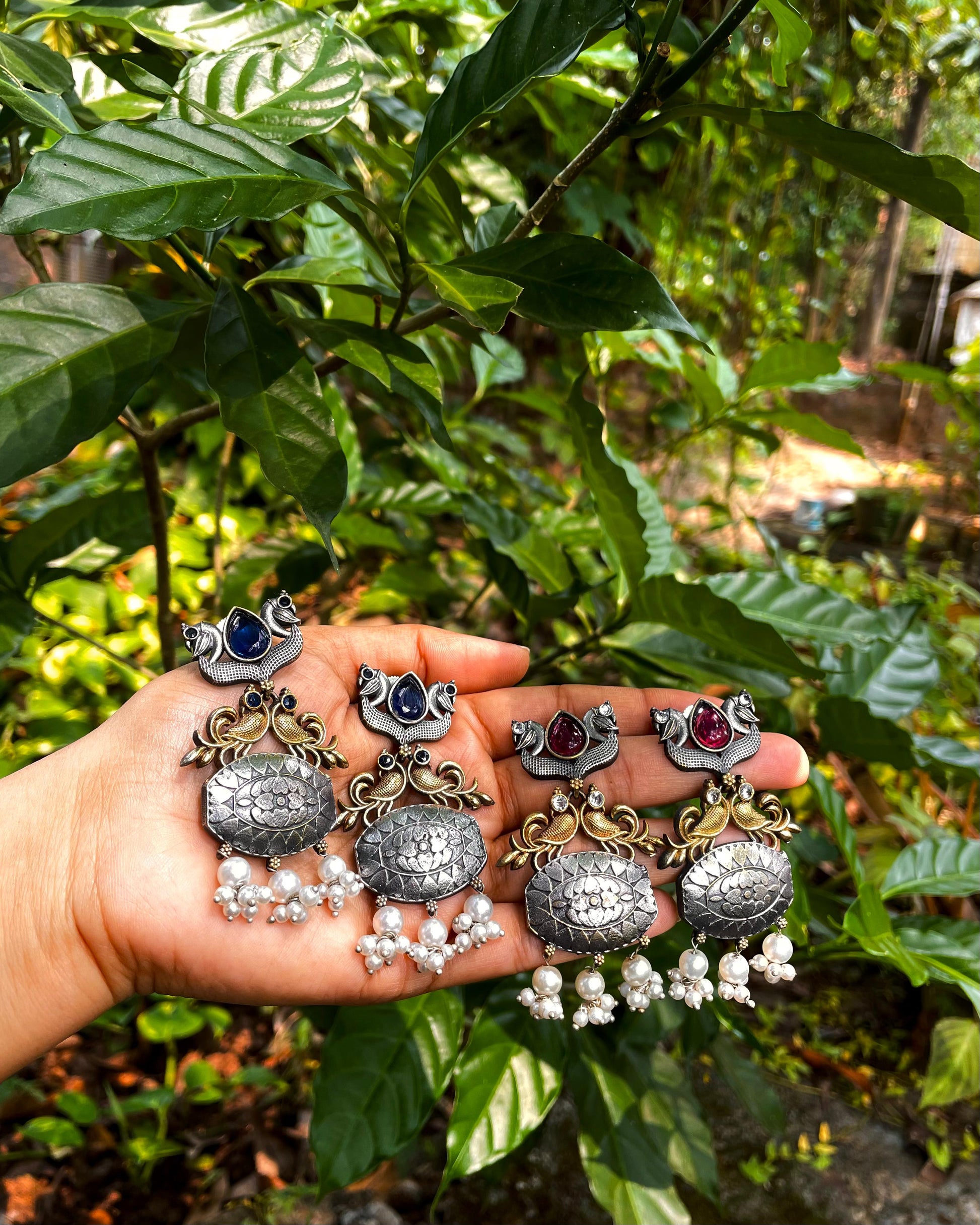 Dwimayura | Silver-Plated Dual-Tone Statement Studs with Pearls