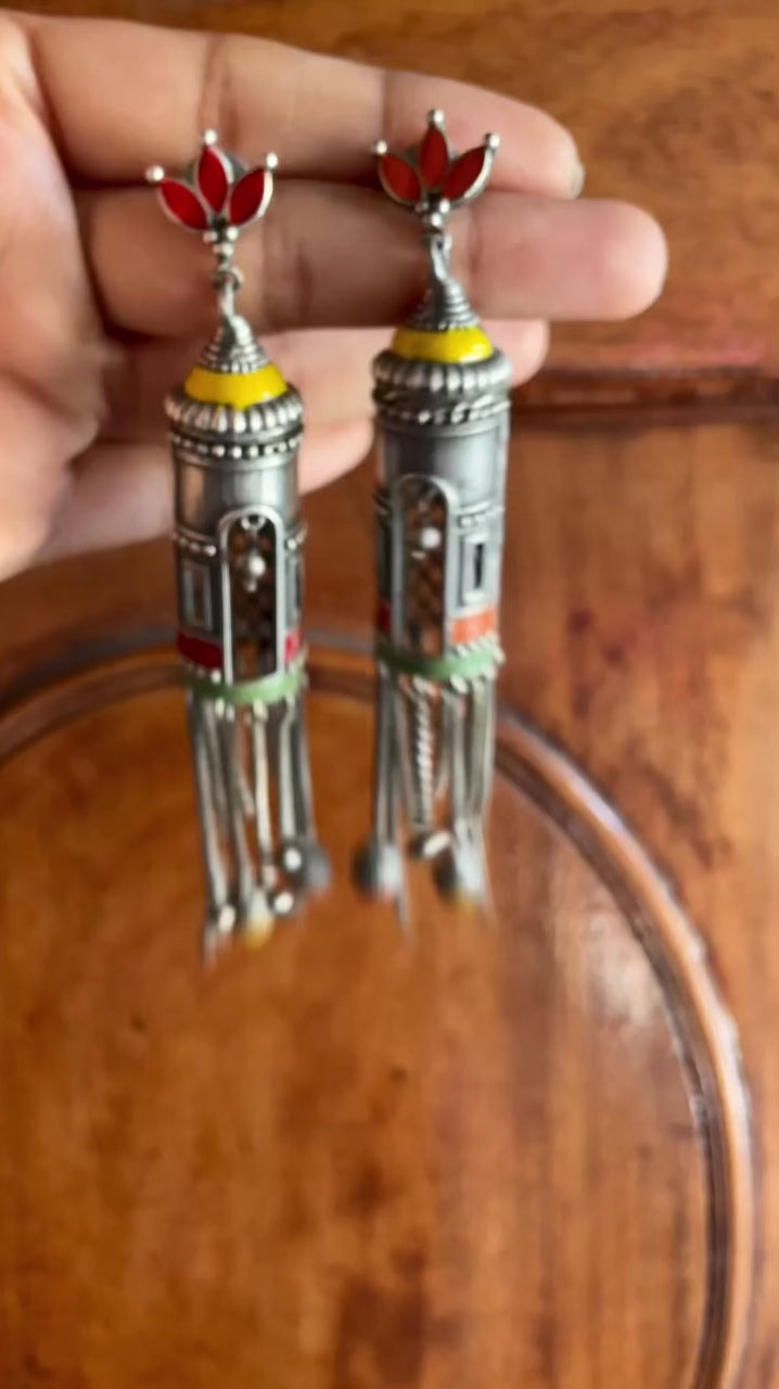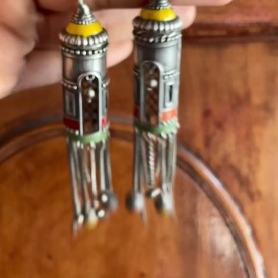 Jharokha Baali | Silver-Plated Meenakari Statement Drops