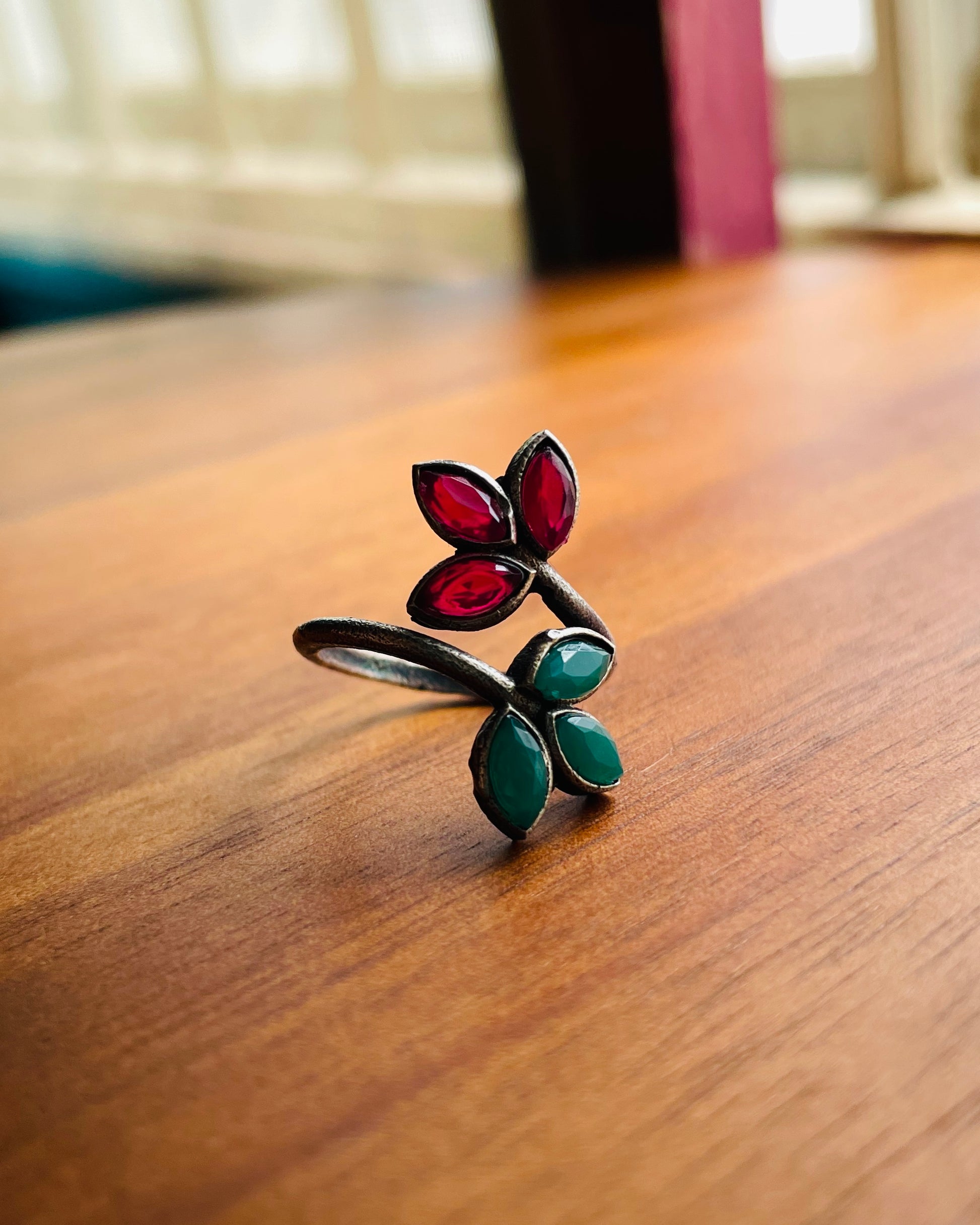 Kritvi | Silver Plated Multicolour Stone Adjustable Ring