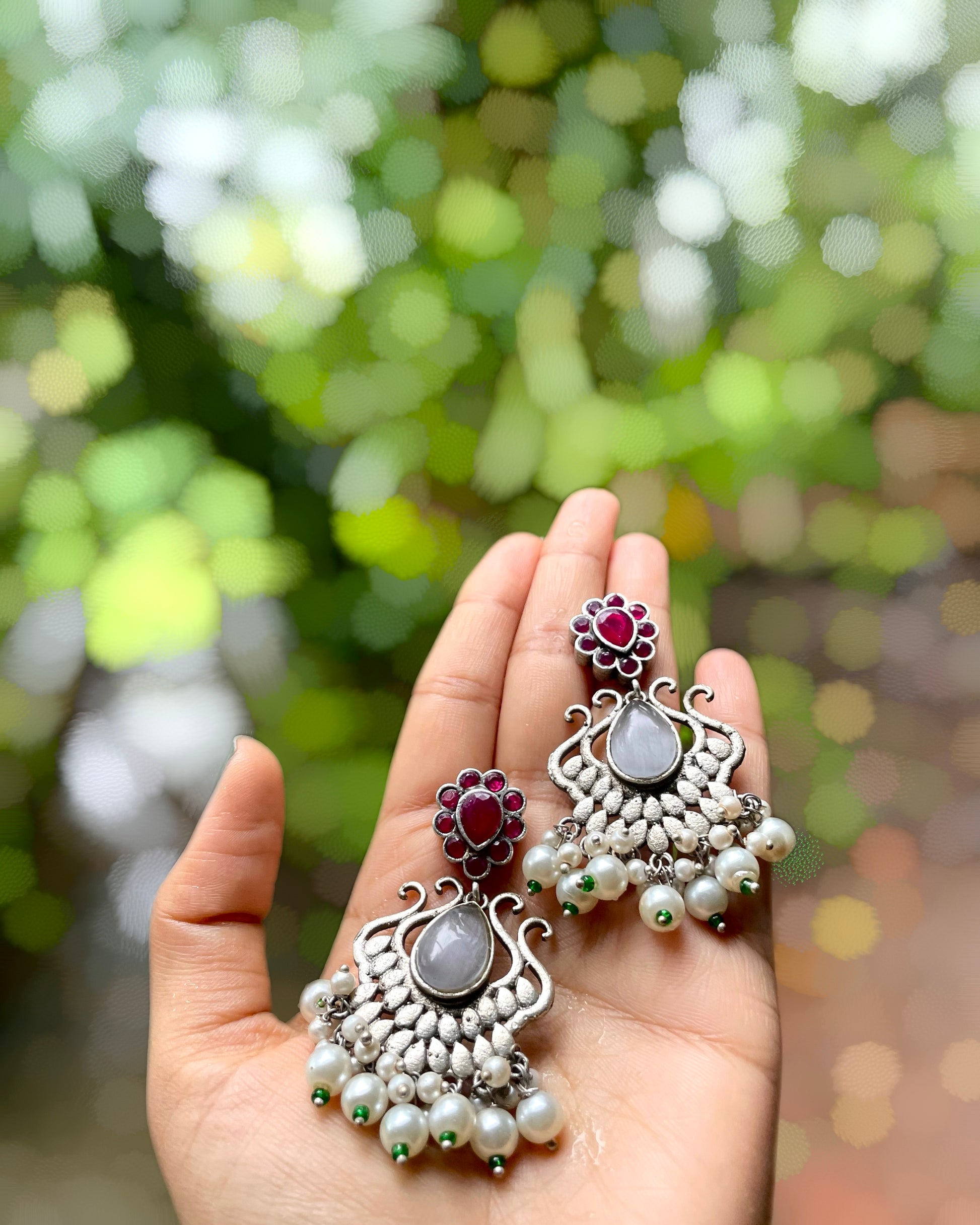 Nivriti | Silver Plated Kemp & Pearl Statement Drops