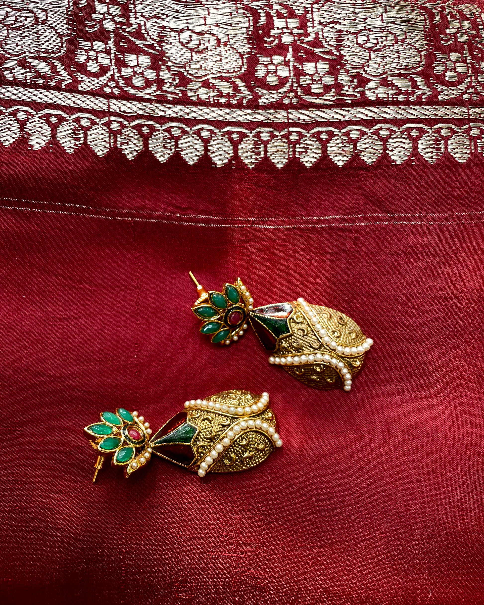 Thanjai Kanakam | Antique Victorian Style Gold-Plated Earrings | Edit त्रिकाय
