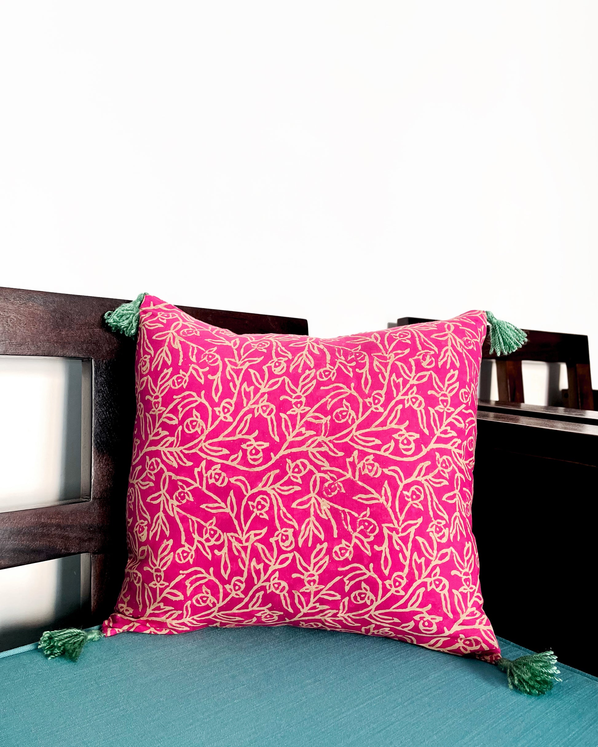 Tropical Tassels & Desert Sands | Pure Cotton Block Printed Cushion Covers with Tassles | Set of 2